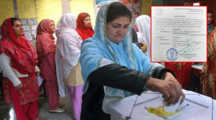 گلگت بلتستان ( نیوز ڈیسک)چیف الیکشن کمشنر گلگت بلتستان راجہ شہباز خان کی جانب سے جاری کردہ اعلامیے کے مطابق الیکشن ایکٹ 2017 کی متعلقہ دفعات کے تحت خواتین اور ٹیکنوکریٹس کے لیے مختص نشستوں پر انتخابات کے انعقاد کے لیے ریٹرننگ آفیسر اور اسسٹنٹ ریٹرننگ آفیسرز کی تقرری کر دی گئی ہے۔ شعبہ تعلقات