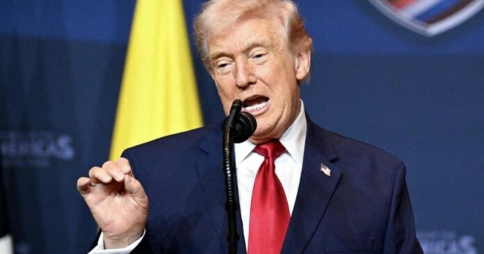 امریکی صدر ڈونلڈ ٹرمپ سات مارچ، 2026 کو فلوریڈا میں خطاب کر رہے ہیں (اے ایف پی)