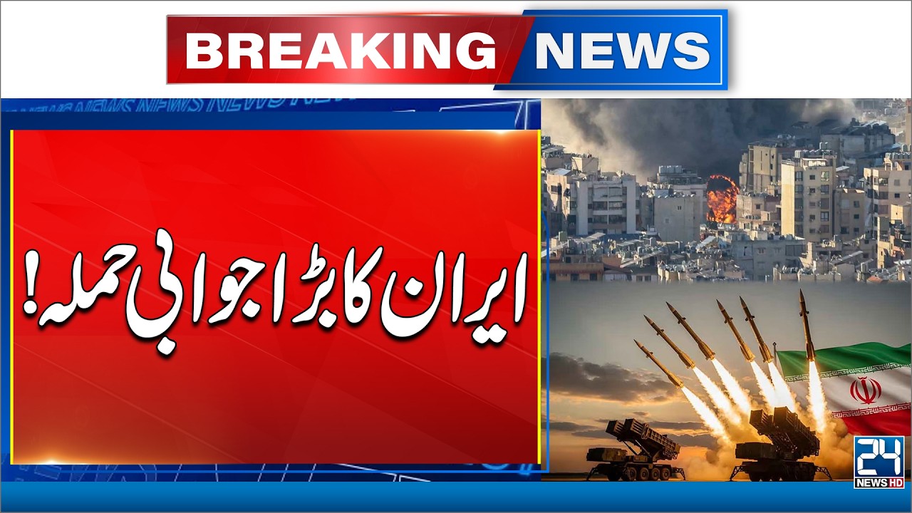HomeEntertainmentایران کابڑا جوابی حملہ! Entertainment ایران کابڑا جوابی حملہ! By muhammadhasan0426@gmail.com March 3, 2026 0 3 Share FacebookTwitterPinterestWhatsApp ایران کا بڑا جوابی حملہ!۔ Read full story on 24 News Digital Urdu Share FacebookTwitterPinterestWhatsApp Previous articleAsim Azhar Calls for Peace Amid Rising Tensions in Pakistan – Daily Soon TimesNext articlePTA Tax on Apple iPhone 17e in Pakistan RELATED ARTICLES Entertainment BLACKPINK Rosé shows love to Bruno Mars’ new single ‘Risk It All’ March 3, 2026 Entertainment وزیر اعظم کی مصروفیات، کابینہ کا اجلاس پھر ملتوی March 3, 2026 Entertainment Jim Carrey claps back at wild rumours about his ‘unrecognisable’ appearance March 3, 2026 LEAVE A REPLY Cancel reply Comment: Please enter your comment! Name:* Please enter your name here Email:* You have entered an incorrect email address! Please enter your email address here Website: Save my name, email, and website in this browser for the next time I comment. - Advertisment - Most Popular Buying returns to bourse, KSE-100 gains over 1,100 points March 3, 2026 مشرق وسطیٰ کشیدگی، آئی سی بی کا یو اے ای میں جاری انگلینڈ لائنز کا دورہ منسوخ March 3, 2026 Food giant Wilmar hit by $150 million loss from Pakistan company: report March 3, 2026 پاکستان ٹیم کے دورہ بنگلادیش پر غیر یقینی کے بادل چھاگئے March 3, 2026 Load more Recent Comments