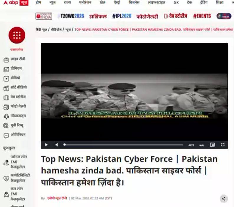 بھارتی میڈیا پر ’سائبر سٹرائیک‘، پاکستان سائبر فورس نے اے بی پی نیوز ہیک کر لیا