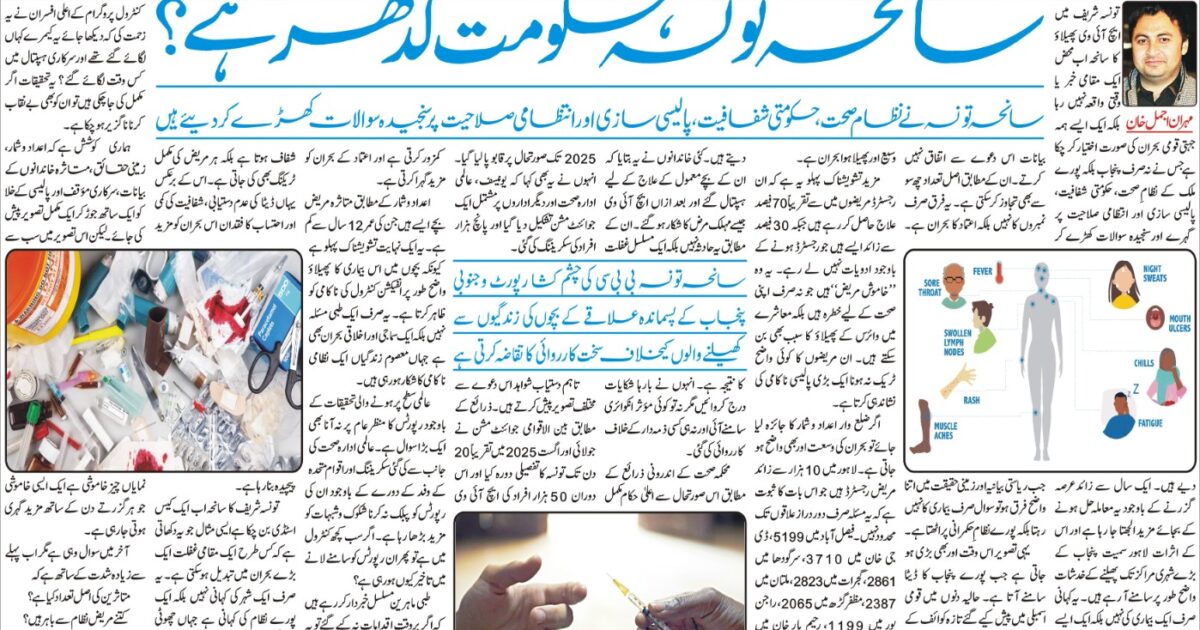 تونسہ شریف میں ایچ آئی وی پھیلاؤ کا سانحہ اب محض ایک مقامی خبر یا وقتی واقعہ نہیں رہا بلکہ ایک ایسے ہمہ جہتی قومی بحران کی صورت اختیار کر چکا ہے جس نے نہ صرف پنجاب بلکہ پورے ملک کے نظامِ صحت، حکومتی شفافیت، پالیسی سازی اور انتظامی صلاحیت پر گہرے اور سنجیدہ سوالات. .. Continue reading تونسہ ایچ آئی وی بحران قومی صحت کے سنگین مسئلے میں تبدیل، کیسز میں اضافہ اور نظامی ناکامیاں بے نقاب →