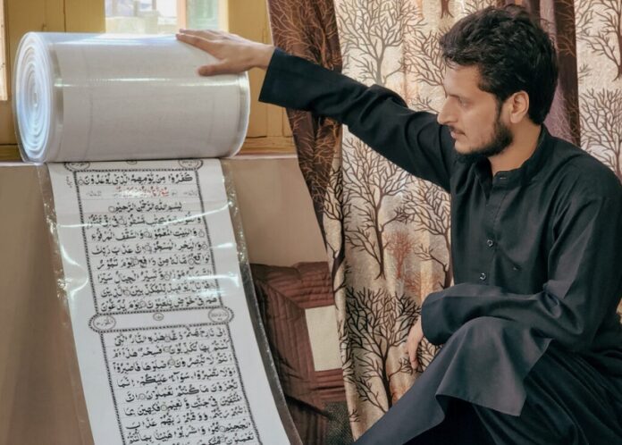 نو جو ا ن نے 500 میٹر طو یل کا غذ پر قر ا ن پا ک تحر یر کر کے عا لمی ر یکا ر ڈ قا ئم کر دیا