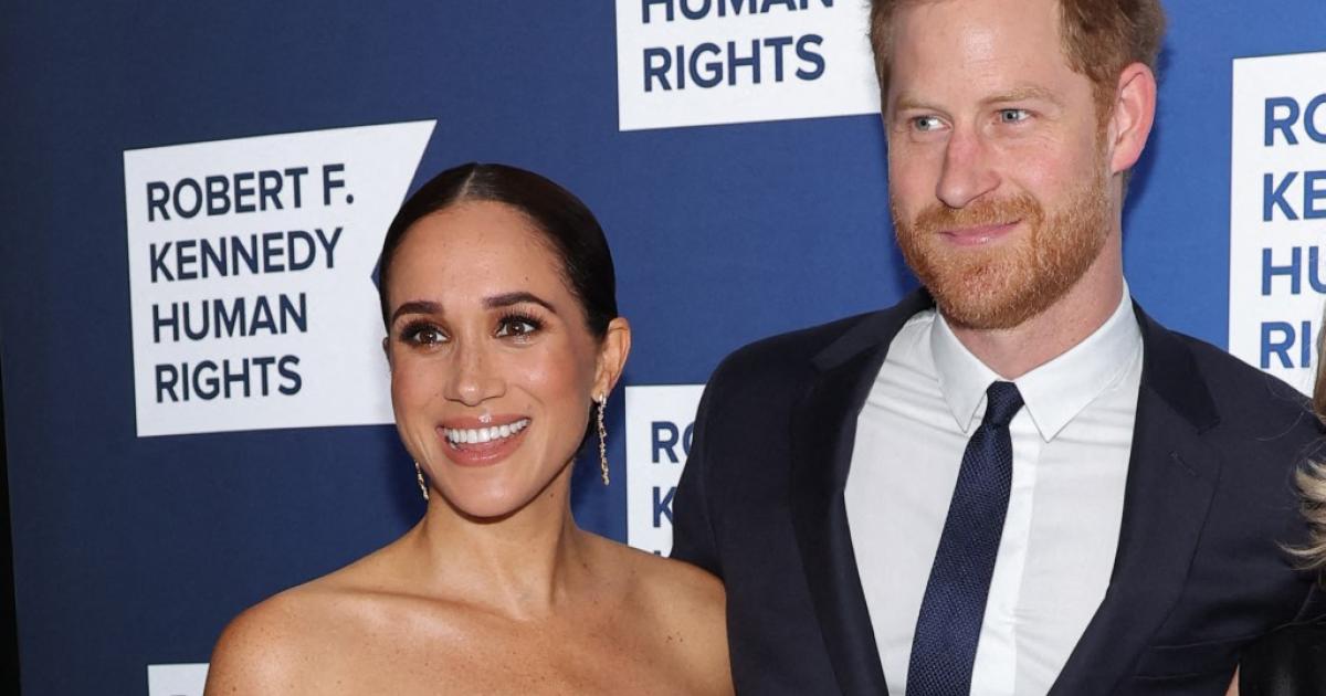 میگن، ڈچس آف سسیکس اور پرنس ہیری، ڈیوک آف سسیکس، نیو یارک ہلٹن میں چھ دسمبر، 2022 کو 2022 کے رابرٹ ایف کینیڈی ہیومن رائٹس ریپل آف ہوپ گالا میں شرکت کر رہے ہیں (اے ایف پی)