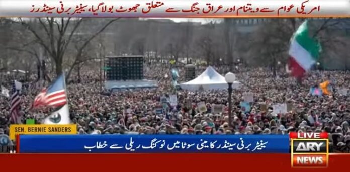 ٹرمپ کے خلاف مظاہرے : ایران جنگ عالمی قوانین کی خلاف ورزی ہے، امریکی سینیٹر