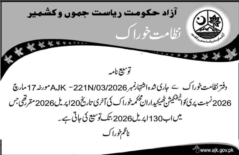 پری کوالیفیکیشن ٹھیکیداران محکمہ خوراک نے محکمے کی طرف سے جاری تاریخ‌میں‌تبدیلی کر تے ہوئے نئی تاریخ کا اشتہار جاری کردیا