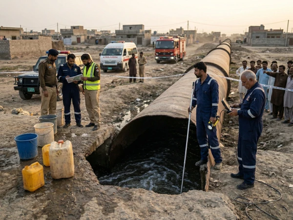 HomeLifestyleکراچی؛ گھر سے پانی بھرنے کیلیے آئی بچی واٹر کارپوریشن کی کھلی... Lifestyle کراچی؛ گھر سے پانی بھرنے کیلیے آئی بچی واٹر کارپوریشن کی کھلی لائن میں ڈوب گئی By muhammadhasan0426@gmail.com March 25, 2026 0 1 Share FacebookTwitterPinterestWhatsApp واٹر لائن کا کچھ حصہ کھلا تھا، جہاں سے بچی پانی بھرتے ہوئے پاؤں پھسلنے سے گر گئی Read full story on Express News Share FacebookTwitterPinterestWhatsApp Previous articleMiddle East live: Israeli strikes on South Lebanon leave nine deadNext articleفیلڈ مارشل بھر پور عسکری طاقت سےسرحدوں کی حفاظت کررہے، دشمن کے 11 جہاز گرائے:احسن اقبال RELATED ARTICLES Lifestyle کراچی، بوٹ بیسن سگنل کے قریب تار چوری کرنے والا شخص کرنٹ لگنے سے ہلاک March 25, 2026 Lifestyle ’اہم معاملات پر فیصلہ متفقہ ہو گا‘ March 25, 2026 Lifestyle انتظار ختم، پی ایس ایل الیون کب شروع ہوگا؟ مکمل شیڈول سامنے آ گیا March 25, 2026 LEAVE A REPLY Cancel reply Comment: Please enter your comment! Name:* Please enter your name here Email:* You have entered an incorrect email address! Please enter your email address here Website: Save my name, email, and website in this browser for the next time I comment. - Advertisment - Most Popular Lawyers’ role essential for ensuring affordable, provision of timely justice to helpless people in society: Governor Balochistan Jaffar Khan Mandokhel March 25, 2026 Noureen Bano Lehri appointed Acting Chairperson of NCSW March 25, 2026 Dacoit with Rs10m head money surrenders March 25, 2026 OGDC foils Sindh oil theft operation, seizes illegal refinery and stolen crude March 25, 2026 Load more Recent Comments
