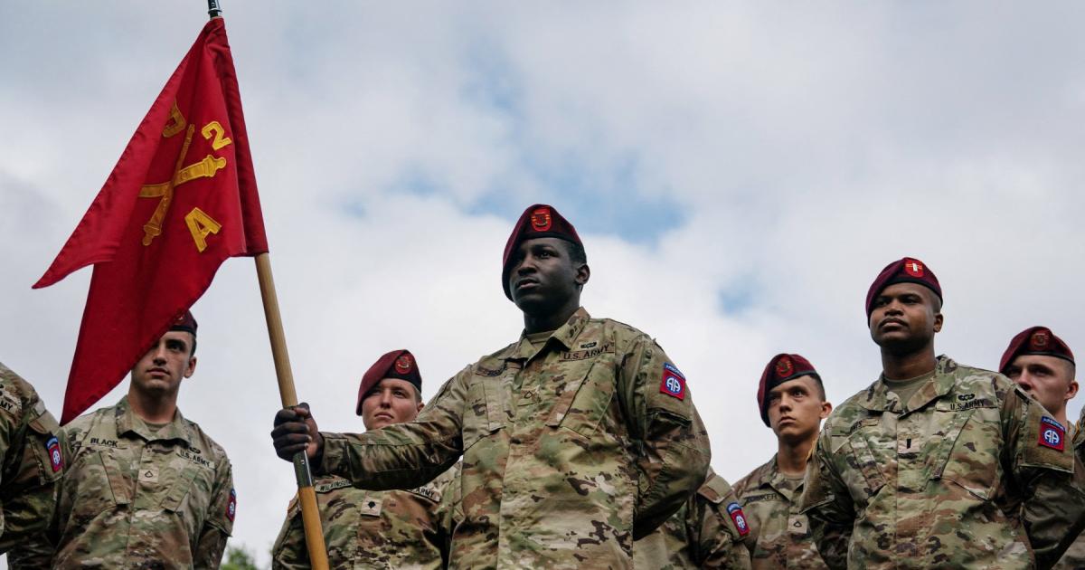 امریکی ایلیٹ 82ویں ایئر بورن ڈویژن کے فوجی دو جون 2023 کو امریکی ریاست شمالی کیرولائنا میں (اے ایف پی)