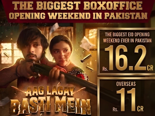 HomeEntertainmentAag Lagay Basti Mein breaks barriers worldwide Entertainment Aag Lagay Basti Mein breaks barriers worldwide By muhammadhasan0426@gmail.com March 25, 2026 0 1 Share FacebookTwitterPinterestWhatsApp After a weekend opening on Eid, the movie has broken all records with Rs27. 2 crores in collection worldwide Read full story on The Express Tribune Share FacebookTwitterPinterestWhatsApp Previous articleAdolescence star scoops major awards at RTS Programme AwardsNext articleسری لنکا کے مہیش تھیکاشانا PSL کا حصہ بن گئے RELATED ARTICLES Entertainment Sikh Community in India Files FIR Against Dhurandhar 2 Over Blasphemy March 25, 2026 Entertainment Reese Witherspoon’s 50th birthday was pure Hollywood magic March 25, 2026 Entertainment علی ظفر نے عید کے نازیبا لباس پر قوم سے معافی مانگ لی March 25, 2026 LEAVE A REPLY Cancel reply Comment: Please enter your comment! Name:* Please enter your name here Email:* You have entered an incorrect email address! Please enter your email address here Website: Save my name, email, and website in this browser for the next time I comment. - Advertisment - Most Popular ICT Police put bike thief behind bars; 3 stolen motorcycles, pistol recovered March 25, 2026 China space startup successfully demonstrates flexible robotic arm in orbit March 25, 2026 Punjab to digitise all 41 manual toll plazas March 25, 2026 Sikh Community in India Files FIR Against Dhurandhar 2 Over Blasphemy March 25, 2026 Load more Recent Comments