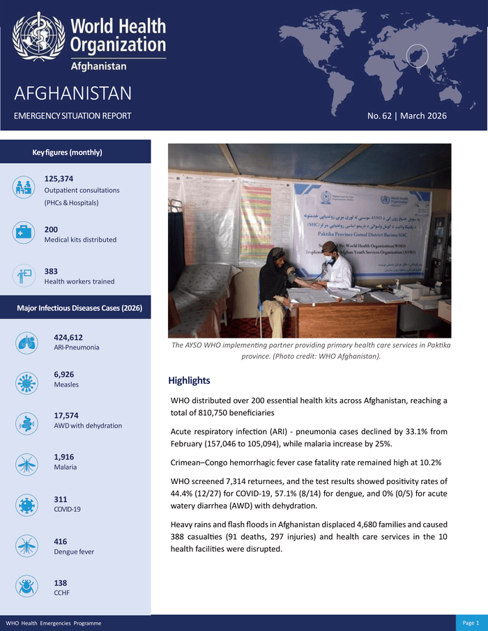 HomeHealthAfghanistan Emergency Situation Report Issue No. 62 | March 2026