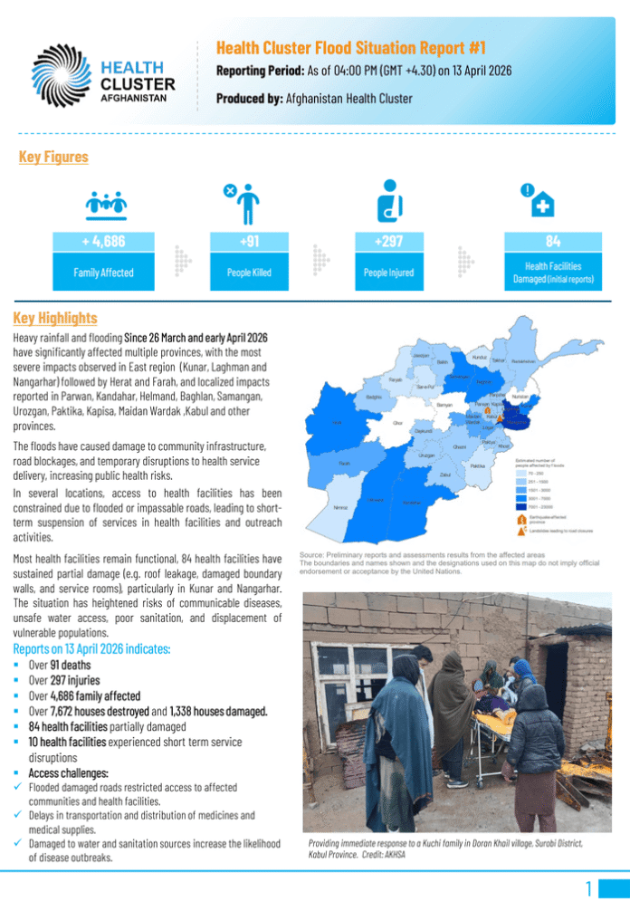 Afghanistan: Health Cluster Flood Situation Report #1