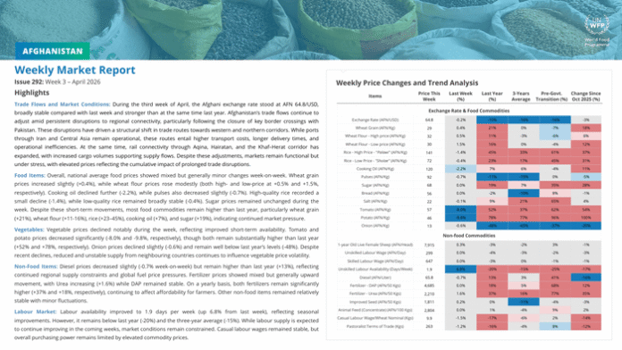 HomeBusinessAfghanistan: Weekly Market Report: Issue 292: Week 3 - April 2026
