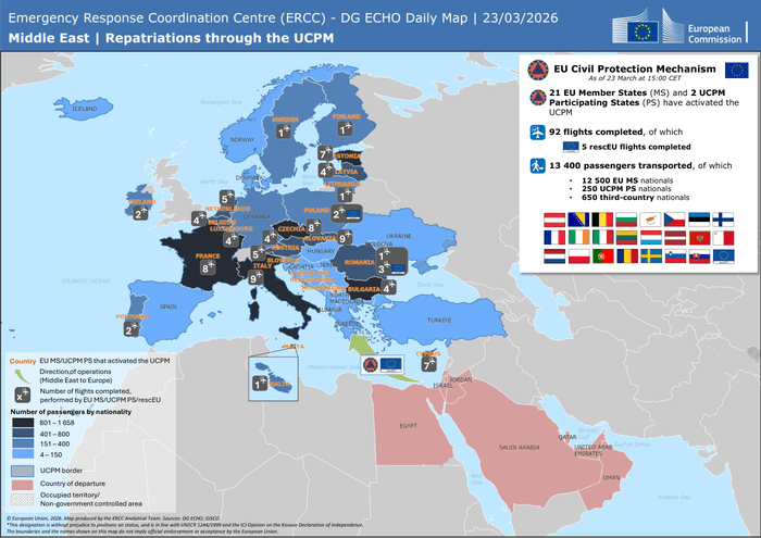 Countries: Austria, Belgium, Bulgaria, Bosnia and Herzegovina, Cyprus, Czechia, Estonia, Finland, France, Ireland, Italy, Lithuania, Luxembourg, Latvia, Malta, Montenegro, Netherlands, Poland, Portugal, Romania, Slovakia, Slovenia, Sweden Source: European Commission’s Directorate-General for European Civil Protection and Humanitarian Aid Operations Please refer to the attached Map.