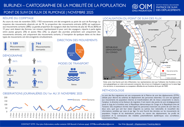 Burundi – Cartographie de la mobilité de la population : Point de suivi de flux de Rumonge | novembre 2025