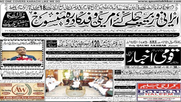 HomeLifestyleDaily Qaumi Akhbar 26-Apr-2026 Lifestyle Daily Qaumi Akhbar 26-Apr-2026 By muhammadhasan0426@gmail.com April 26, 2026 0 6 Share FacebookTwitterPinterestWhatsApp ZOOM TO READ The post Daily Qaumi Akhbar 26-Apr-2026 appeared first on Qaumi Akhbar. Read full story on Qaumi Akhbar Share FacebookTwitterPinterestWhatsApp Previous article46ویں لندن میراتھون میں نیا ریکارڈ، دو کھلاڑیوں نے تاریخ رقم کردیNext articleThe ‘Wall of Peace and Sufism’ inaugurated at Sindh Bar Council RELATED ARTICLES Lifestyle سوہاوہ: ڈاکٹر تنویر افضل کو اسسٹنٹ پروفیسر ترقی پر مبارکبادپیش کرتی ہوں، ہیڈ مسٹریس مسرت جبین April 26, 2026 Lifestyle الفلاح فاؤنڈیشن پاکستان کے زیر اہتمام بالا کوٹ میں فری میڈیکل کیمپ، سینکڑوں مریض مستفید April 26, 2026 Lifestyle International Sindhi Diaspora Conference Successfully Held in London United Kingdom April 26, 2026 LEAVE A REPLY Cancel reply Comment: Please enter your comment! Name:* Please enter your name here Email:* You have entered an incorrect email address! Please enter your email address here Website: Save my name, email, and website in this browser for the next time I comment. - Advertisment - Most Popular Renowned Balochi folk artist Ustad Noor Bakhsh Enthrals Audience in Music Concert at ACP April 26, 2026 پاکستان بھر میں گرم اور خشک موسم کی لہر برقرار، محکمہ موسمیات کی وارننگ April 26, 2026 رنبیر کپور نے آدتیہ رائے کپور کیساتھ تصویر کھنچوانے سے مذاقاً انکار کردیا April 26, 2026 بالی ووڈ میں پیڈ پبلسٹی زیادہ ہے، کرن جوہر April 26, 2026 Load more Recent Comments