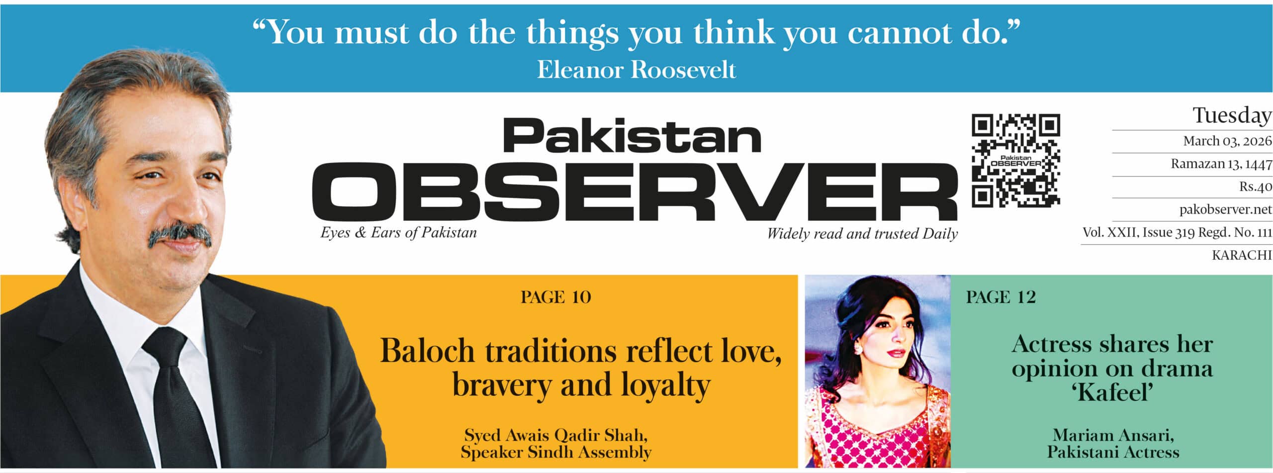 HomeTechnologyE-PAPER March 03 KHI STATION Technology E-PAPER March 03 KHI STATION By muhammadhasan0426@gmail.com March 2, 2026 0 3 Share FacebookTwitterPinterestWhatsApp CLICK HERE FOR E-PAPER March 03 KHI STATION Read full story on Pakistan Observer Share FacebookTwitterPinterestWhatsApp Previous articleE-PAPER March 03 IBD STATIONNext articleE-PAPER March 03 LHR STATION RELATED ARTICLES Technology E-PAPER March 03 LHR STATION March 2, 2026 Technology E-PAPER March 03 IBD STATION March 2, 2026 Technology Commentary: There’s more than meets the eye to Singapore’s new Gulfstream G550 maritime surveillance aircraft March 2, 2026 LEAVE A REPLY Cancel reply Comment: Please enter your comment! Name:* Please enter your name here Email:* You have entered an incorrect email address! Please enter your email address here Website: Save my name, email, and website in this browser for the next time I comment. - Advertisment - Most Popular Pakistan’s soil is sacred, President tells Parliament March 3, 2026 EFF & RSF reviews: Virtual talks with IMF now due to regional unrest March 3, 2026 President endorse major penalty imposed on FBR officer March 3, 2026 Khamenei’s absentia funeral prayers offered in Peshawar March 3, 2026 Load more Recent Comments