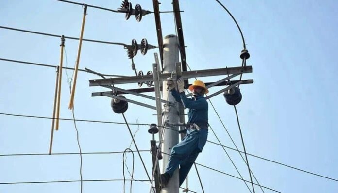 A FESCO worker fixes a line on an electric pole on December 19, 2022. — APPCPPA files request citing Rs0. 26/unit cost gap in March. Ref fuel cost was Rs7. 99 against actual Rs8. 26 per unit. If approved, K-Electric consumers will also face increase. ISLAMABAD: Electricity consumers may. ..