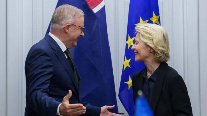 EU-Australia talks to strike a trade pact were in their “last mile” Monday, Brussels said as European Union chief Ursula von der Leyen arrived in Sydney raising hopes for a deal.