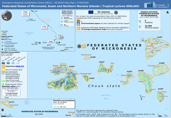Federated States of Micronesia, Guam and Northern Mariana Islands | Tropical cyclone SINLAKU – DG ECHO Daily Map | 27/04/2026