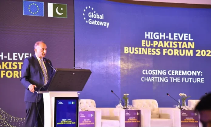 ISLAMABAD: Minister for Climate Change, Musadik Masood Malik, reaffirmed that the government is committed to providing foreign investors with world-class facilities and vowed that it remains a top priority of the present rulers. Addressing the high-level EU-Pakistan Business Forum in Islamabad on Wednesday, he underscored the importance of deepening trade ties between Pakistan and the European Union. He expressed appreciation for the EU’s commitment to investing over EUR 20 million, specifically aimed at supporting Small and Medium Enterprises towards green stamping, innovation, and creative development. READ MORE: Country positioning itself as large-scale investment destination: SAPM Highlighting Pakistan’s severe vulnerability to climate-driven catastrophes, Musadik Malik said that the country tragically lost six thousand lives, while twenty thousand individuals have been left injured or disabled, and forty million people have been displaced in recent floods. Meanwhile, the first EU–Pakistan Business Forum concluded in Islamabad on Wednesday, marking a major step forward in strengthening economic ties between the European Union, the world’s largest single market, and Pakistan. The key outcome of the Forum was the launch of the EU–Pakistan Business Network, bringing together more than 300 European companies operating in Pakistan under one platform. The Network will serve as a unified voice for EU businesses, facilitate policy dialogue, and support new companies exploring investment opportunities in Pakistan. The Forum also saw the announcement and launch of several flagship initiatives under the EU’s Global Gateway strategy, the EU’s largest investment program outside of the EU, which aims to leverage 400 billion EUR of de-risked investments between 2021 and 2027. These included: The Team Europe “Better Governance and Business Environment” program (EUR 24. 1 million), which was jointly launched by the Minister of Commerce Jam Kamal Khan and Peteris Ustubs, director Asia Pacific in the European Commission. The project aims to strengthen the competitiveness of Pakistan’s export-oriented small and medium-sized enterprises through regulatory reforms, sustainability support, and improved access to finance. The inauguration of a Technical and Vocational Education and Training Centre of Excellence in Peshawar, designed to equip Pakistan’s workforce with future-ready skills linked to IT and artificial intelligence, and strengthen industry linkages. Copyright Business Recorder, 2026