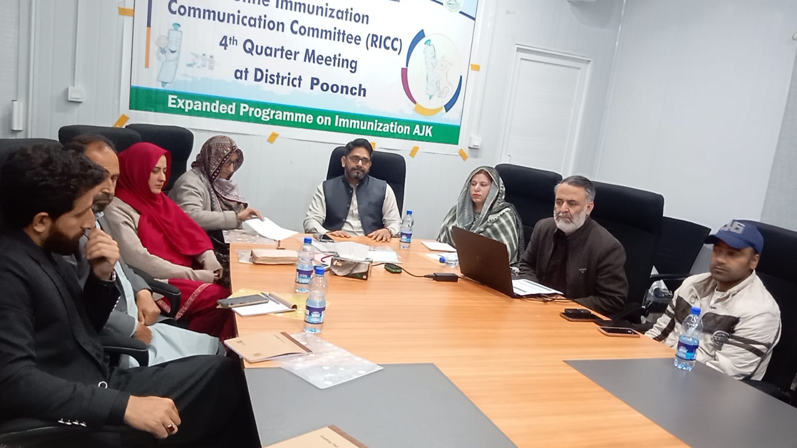 Rawalakot: The fourth quarterly meeting of the Routine Immunization Communication Committee (RICC) was held at the Old DHQ Office in Poonch to enhance the effectiveness of child immunization programs against deadly diseases. The meeting was attended by AMS Dr. Jawad Afzal Kayani, CAD UNICEF Sadra Mir, Dr. Nusrat Jehan (District Coordinator, National Program), District Livestock