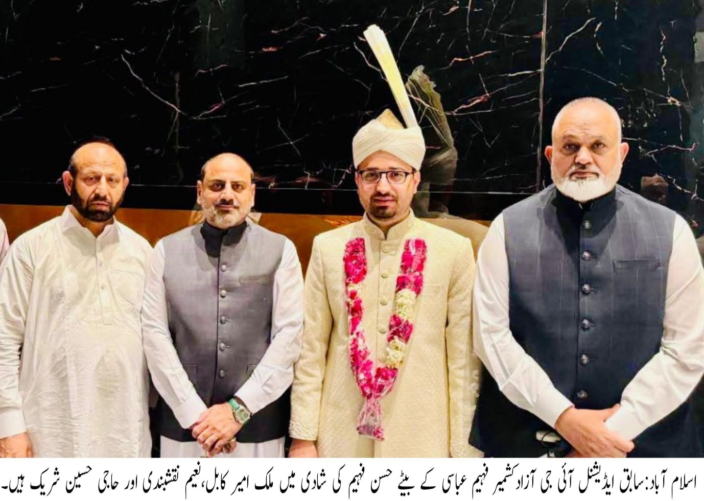 Islamabad, (Parliament Times): Presidential Advisor for Overseas United Kingdom Malik Ameer Kabul, Chairman OPWC Naeem Naqshbandi, and President Overseas Pakistani Welfare Council and Advisor to the Federal Tax Ombudsman Haji Abid Hussain attended the wedding reception (Walima) of Hassan Faheem, son of former Additional Inspector General of Police Azad Jammu and Kashmir, Faheem Abbasi, on Monday. The prestigious