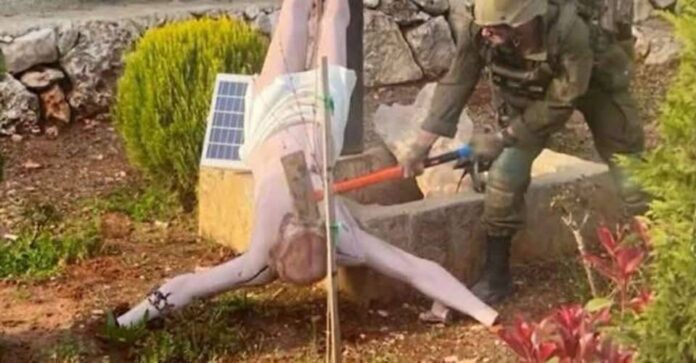 Israel’s army said Monday it had determined that an image circulating on social media showing one of its soldiers in south Lebanon hitting a statue of Jesus Christ is authentic.