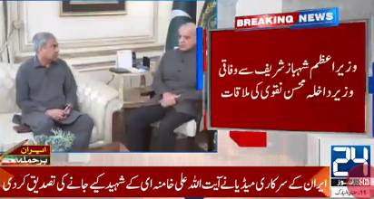 Interior Minister Syed Mohsin Naqvi on Sunday met with Prime Minister Shehbaz Sharif and briefed him about his visit to Rome, Italy where he attended four-nation conference of interior ministers, reported 24NewsHD TV channel.