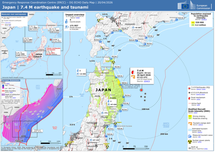 Japan | 7.4 M earthquake and tsunami – DG ECHO Daily Map | 20/04/2026
