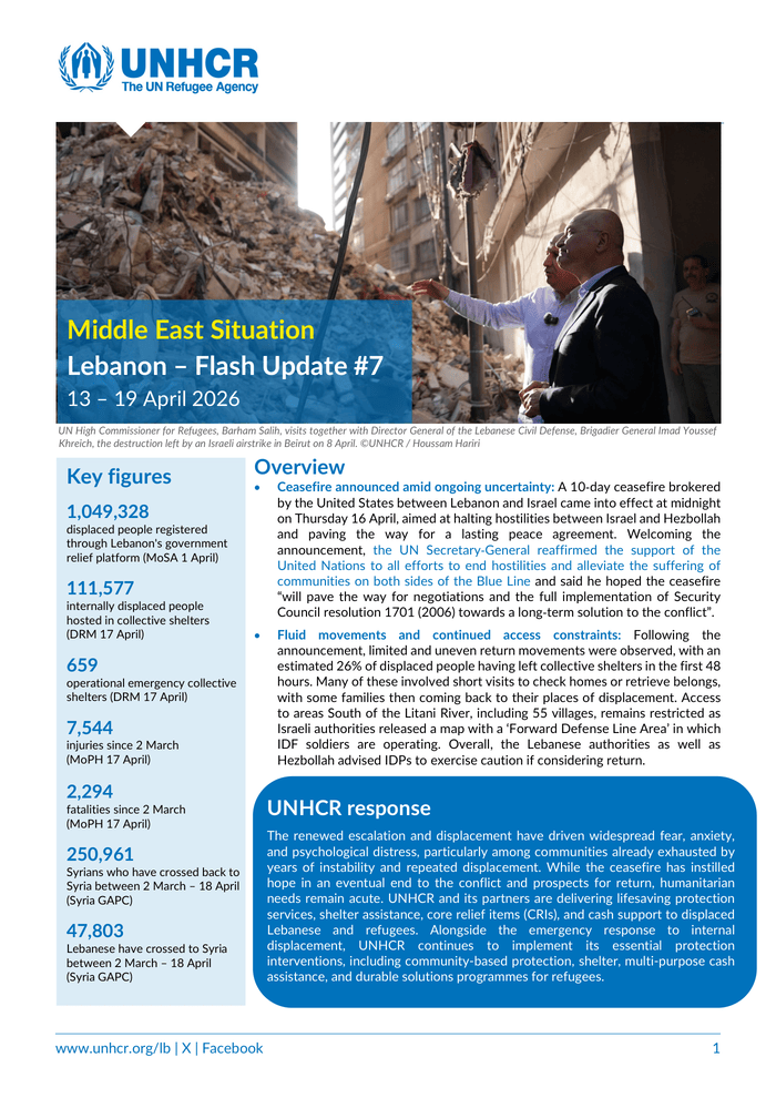 Middle East Situation Lebanon – Flash Update #7 (13 – 19 April 2026)