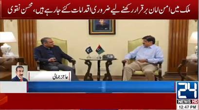Interior Minister Syed Mohsin Naqvi on Wednesday met with Sindh Chief Minister Syed Murad Ali Shah and Chinese Consul General in Karachi Yang Yundong, reported 24NewsHD TV channel.