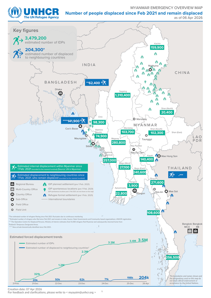 Myanmar Emergency Overview Map – Number of people displaced since Feb 2021 and remain displaced (as of 06 Apr 2026)