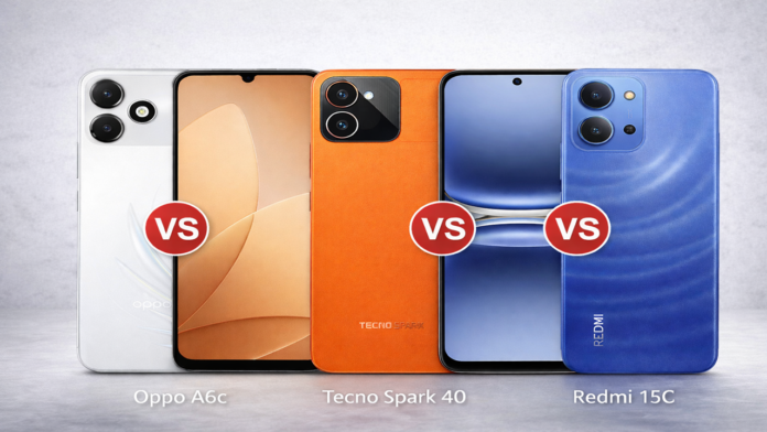Oppo A6c vs Tecno Spark 40 vs Redmi 15C: Best Smartphone Under PKR 40,000?