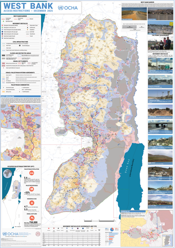 HomePoliticsoPt: West Bank Access Restrictions - December 2025 Politics oPt: West Bank Access Restrictions – December 2025 By muhammadhasan0426@gmail.com April 23, 2026 0 3 Share FacebookTwitterPinterestWhatsApp Country: occupied Palestinian territory Source: UN Office for the Coordination of Humanitarian Affairs Please refer to the attached Map. Read full story on Reliefweb Share FacebookTwitterPinterestWhatsApp Previous articlePM orders monsoon preparedness across PakistanNext articleسوہائے علی ابڑو کی شوہر سے علیحدگی کی خبریں زیر گردش‘ ایک دوسرے کوان فالوکردیا RELATED ARTICLES Politics Trump: US in no rush but ‘clock is ticking’ for Iran April 23, 2026 Politics No negligence will be tolerated, says MS Sir Sadiq Abbasi Hospital April 23, 2026 Politics ’میرے پاس بہت وقت ہے لیکن ایران کے پاس وقت ختم ہو رہا ہے‘ April 23, 2026 LEAVE A REPLY Cancel reply Comment: Please enter your comment! Name:* Please enter your name here Email:* You have entered an incorrect email address! Please enter your email address here Website: Save my name, email, and website in this browser for the next time I comment. - Advertisment - Most Popular فارغ بیٹھنا منفی سوچ پیدا کرتا ہے: امیتابھ بچن April 23, 2026 CAD to USD: Canadian Dollar Rate Today- April 23, 2026 April 23, 2026 Pahalgam, one year later: Context, claims & controversy April 23, 2026 Austria likely to invest 3.34% of GDP in research this year April 23, 2026 Load more Recent Comments