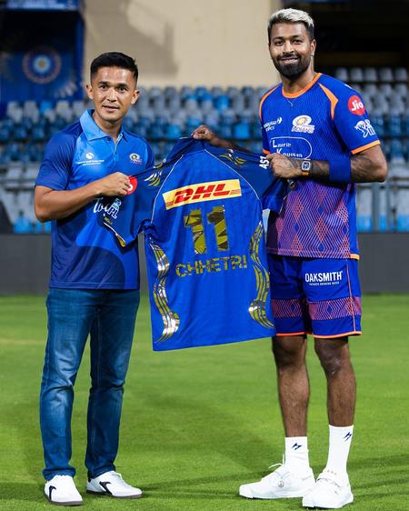 Pandya Presents Chhetri With MI Jersey On His Visit To Training Camp At Wankhede
