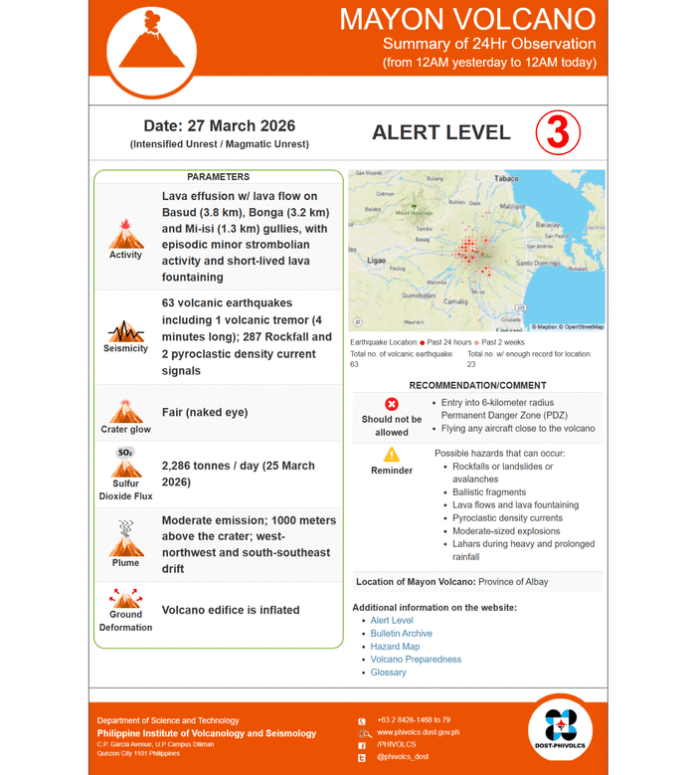 Philippines: Mayon Volcano Summary of 24Hr Observation 27 March 2026 12:00 AM [EN/TL]