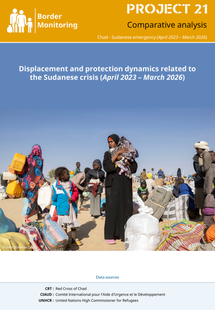 Countries: Chad, Sudan Source: UN High Commissioner for Refugees Please refer to the attached file. 1. General Context and Framework for Analysis Since the outbreak of the armed conflict in Sudan in April 2023 between the Sudanese Armed Forces (SAF) and the Rapid Support Forces (RSF), the region has been facing a major displacement crisis. The intensification and prolongation of the fighting has led to a widespread deterioration of the security and humanitarian situation, particularly in Darfur and in the border areas. Over time, civilian populations have faced serious violations of rights including the right to life, disruption of essential services, and limited access to economic opportunities and livelihoods. This situation has forced many households to flee to neighboring countries, including Chad, to seek international protection. Eastern Chad serves as a major destination for displacement flows from Sudan, particularly in the provinces of Ouaddaï, Wadi Fira, Ennedi Est and Sila, through the main entry points of Adré, Tiné, Kariari and Adé. Project 21 (P21) border monitoring documents displacement dynamics based on profiles, reasons for departure and protection risks. Over three time periods (April 2023 – March 2024, April 2024 – March 2025 and April 2025 – March 2026), more than 67, 000 households, representing more than 213, 000 individuals, were interviewed at ports of entry and transit sites. This report provides a comparative analysis of the three periods in order to identify the evolution of displacement dynamics, profiles and protection risks.