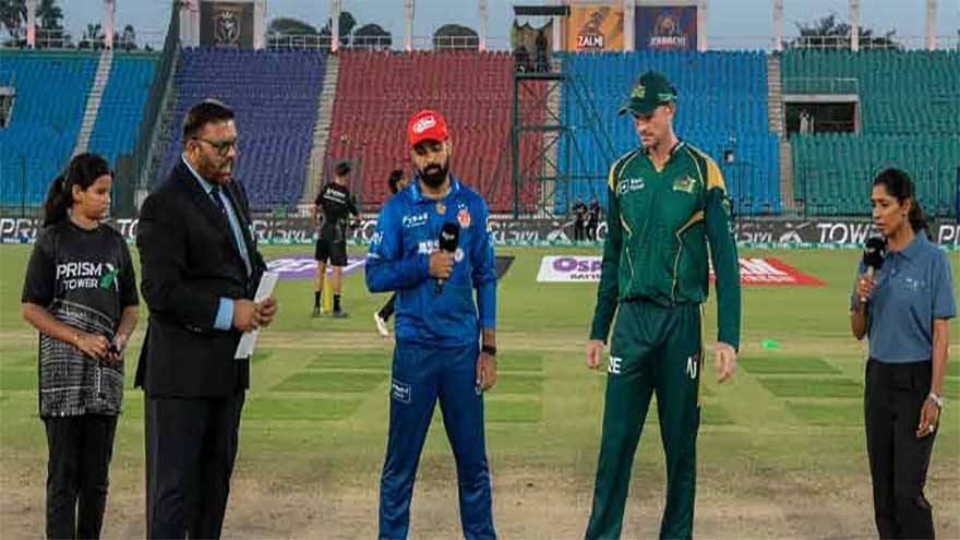 HomeSportsPSL 11: Islamabad United opt to bowl against Multan Sultans Sports PSL 11: Islamabad United opt to bowl against Multan Sultans By muhammadhasan0426@gmail.com April 26, 2026 0 2 Share FacebookTwitterPinterestWhatsApp Islamabad United won the toss and chose to field first against Multan Sultans in the 40th match of the Pakistan Super League on Saturday. Read full story on The Nation Share FacebookTwitterPinterestWhatsApp Previous articleIPL 2026: Mohammed Shami’s Last-Ball Six Takes LSG-KKR Game To Super OverNext articleCan solar save textile industry? RELATED ARTICLES Sports Chelsea steady the ship by booking spot in FA Cup final April 26, 2026 Sports بنگلہ دیش نے پاکستان کے خلاف اسکواڈ کا اعلان کر دیا April 26, 2026 Sports Arsenal beat Lyonnes 2-1 in Women’s Champions League semi-final first leg April 26, 2026 LEAVE A REPLY Cancel reply Comment: Please enter your comment! Name:* Please enter your name here Email:* You have entered an incorrect email address! Please enter your email address here Website: Save my name, email, and website in this browser for the next time I comment. - Advertisment - Most Popular سی پیک فیز ٹو میں گوادر کی ترقی کو کلیدی اہمیت، بلیو اکانومی، منرل کوریڈور اور وسطی ایشیائی ریاستوں سے منسلک کرنے کے منصوبوں... April 26, 2026 Iranian FM Araghchi lands in Pakistan after Oman visit, next stop Moscow: diplomatic source April 26, 2026 جہلم پولیس نے 17 سالہ گمشدہ لڑکے کو تلاش کر کے لواحقین سے ملا دیا April 26, 2026 اسلام آباد میں سیرینا ہوٹل اور ریڈ زون کے اطراف ٹریفک پابندیاں آج ختم ہو گئیں، نائب وزیر اعظم April 26, 2026 Load more Recent Comments
