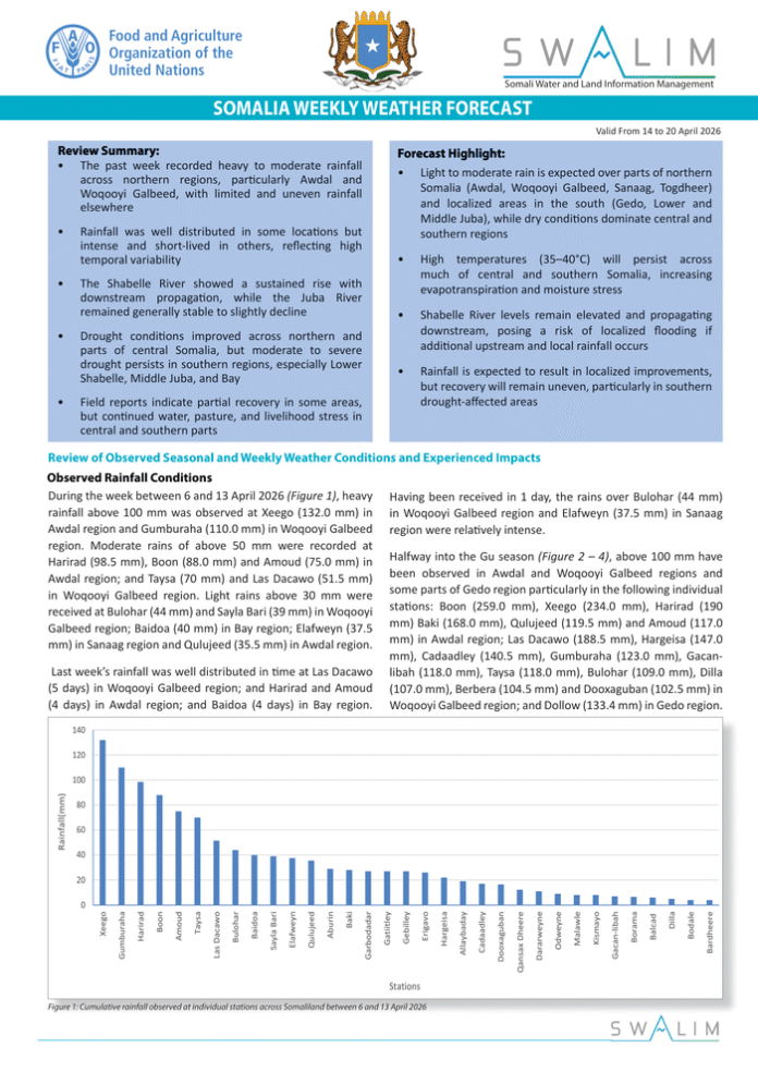 Somalia Weekly Weather Forecast – Valid From 14 to 20 April 2026