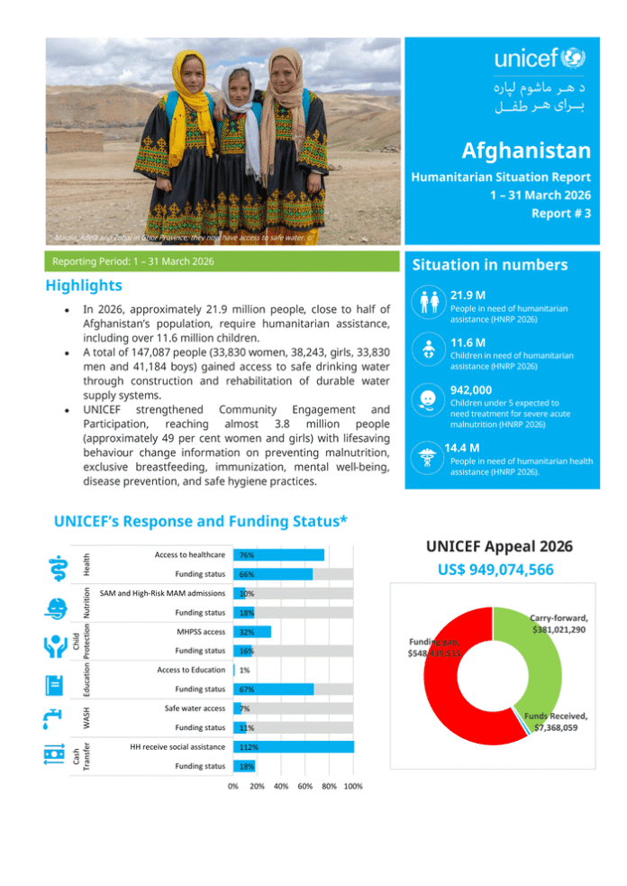 UNICEF Afghanistan Humanitarian Situation Report No. 3, 31 March 2026