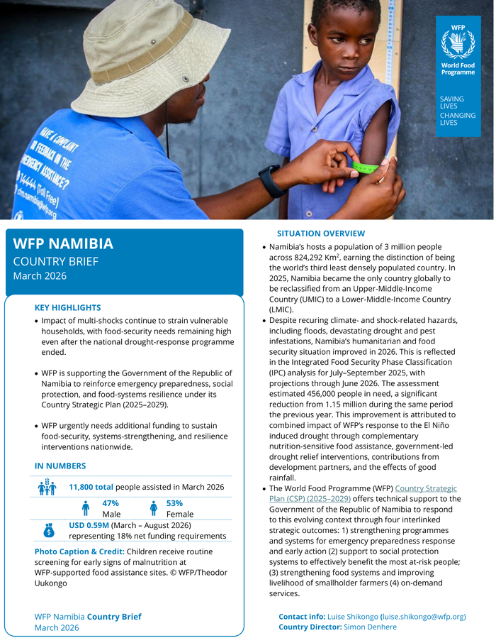 WFP Namibia Country Brief March 2026