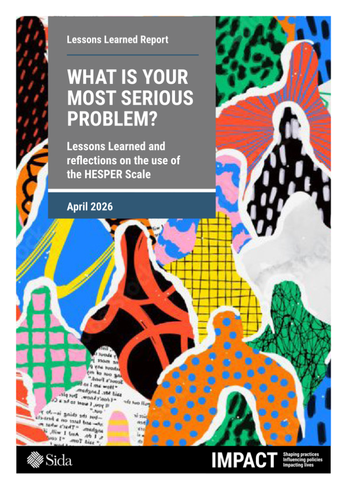 Country: World Sources: IMPACT Initiatives, Swedish International Development Cooperation Agency Please refer to the attached file. Executive Summary Since 2023, IMPACT Initiatives has piloted the HESPER Scale across multiple crisis contexts to better understand how affected populations perceive and prioritise their needs. As a new tool, the HESPER Scale has provided valuable complementary insights to existing analytical approaches. Rather than replacing existing analytical frameworks, it introduces a people centred lens that captures how affected communities experience and express their needs. When used alongside standard multi-sectoral analysis, it helps build a more complete picture of humanitarian needs, combining measures of severity with insights into lived experience and perceived priorities. One of the key operational advantages of the approach is its ability to generate rapid insights. In several contexts, HESPER results have been used to inform early-stage discussions with donors and coordination platforms. By presenting community defined priorities at the outset of the Humanitarian Program Cycle, the tool has helped reframe strategic dialogue and encourage reflection on differences between measured and perceived needs. This early engagement represents a concrete opportunity to strengthen the relevance and responsiveness of humanitarian planning. Despite its added value, the implementation of HESPER has highlighted several operational and methodological challenges. These include the module’s length when integrated into large-scale assessments, the need to adapt questions to sensitive contexts, translation issues, and difficulties in aligning perception-based findings with some sectoral framework dimensions. These challenges underscore the importance of maintaining flexibility in using the tool, allowing for contextual adaptation while preserving a core level of comparability. Overall, the HESPER Scale represents a strategic opportunity to promote a more nuanced understanding of humanitarian needs by systematically integrating the perspectives of affected populations into analysis and decision making. Compared with other existing tools, its added value lies in supporting a shift towards more people centred responses. The use of the HESPER tool can generate additional evidence to strengthen advocacy for more relevant, accountable, and effective humanitarian funding, by ensuring that resource allocation and programmatic priorities are aligned with how communities themselves define their most pressing challenges. Based on these reflections, IMPACT Initiatives will, in the coming years, continue to refine and use the HESPER Scale to deepen understanding of community defined priorities and to test its application across research cycles and crisis settings. These reflections will also inform the development of an organisational analytical framework to better capture and analyse community priorities across crises. As a longer-term objective, IMPACT will strengthen the use of HESPER as a powerful advocacy opportunity to promote more nuanced, people centred analysis that informs both strategic discussions and operational decision making.